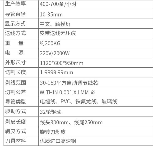 ![]() ![]() 特點(diǎn): 1.精度:8輪送線(xiàn),皮帶式,2個(gè)獨(dú)立的送線(xiàn)系統(tǒng),精準(zhǔn)度可達(dá)到1‰ 2.皮帶:如線(xiàn)材壓變形,可以根據(jù)線(xiàn)材訂制皮帶 3.導(dǎo)管:4-18MM,可以上下運(yùn)動(dòng),也可以水平狀態(tài) 技術(shù)指標(biāo): 正常工作電壓:212V~232V 額定頻率:50Hz 極限工作電壓:202V~240V 額定電流:10A~25 產(chǎn)品規(guī)格